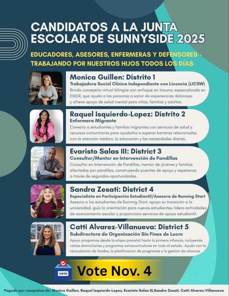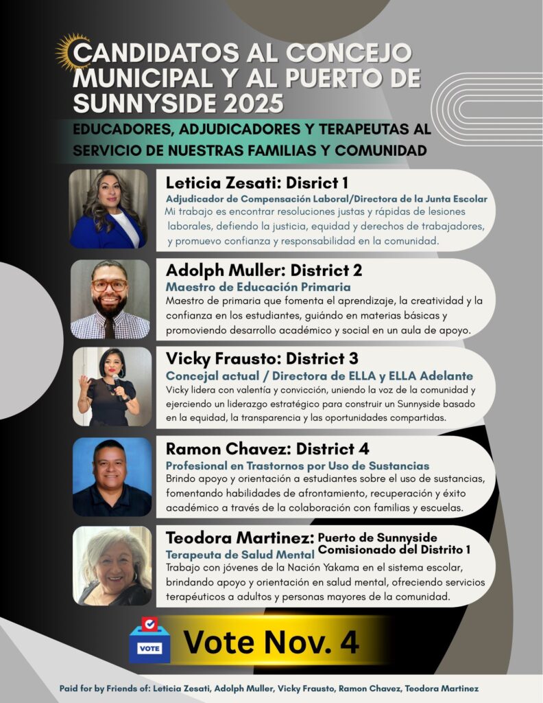 No esperes hasta el último momento — completa y envía tu boleta temprano para asegurarte de que tu voto cuente. Juntos, podemos hacer que Sunnyside sea más fuerte.
